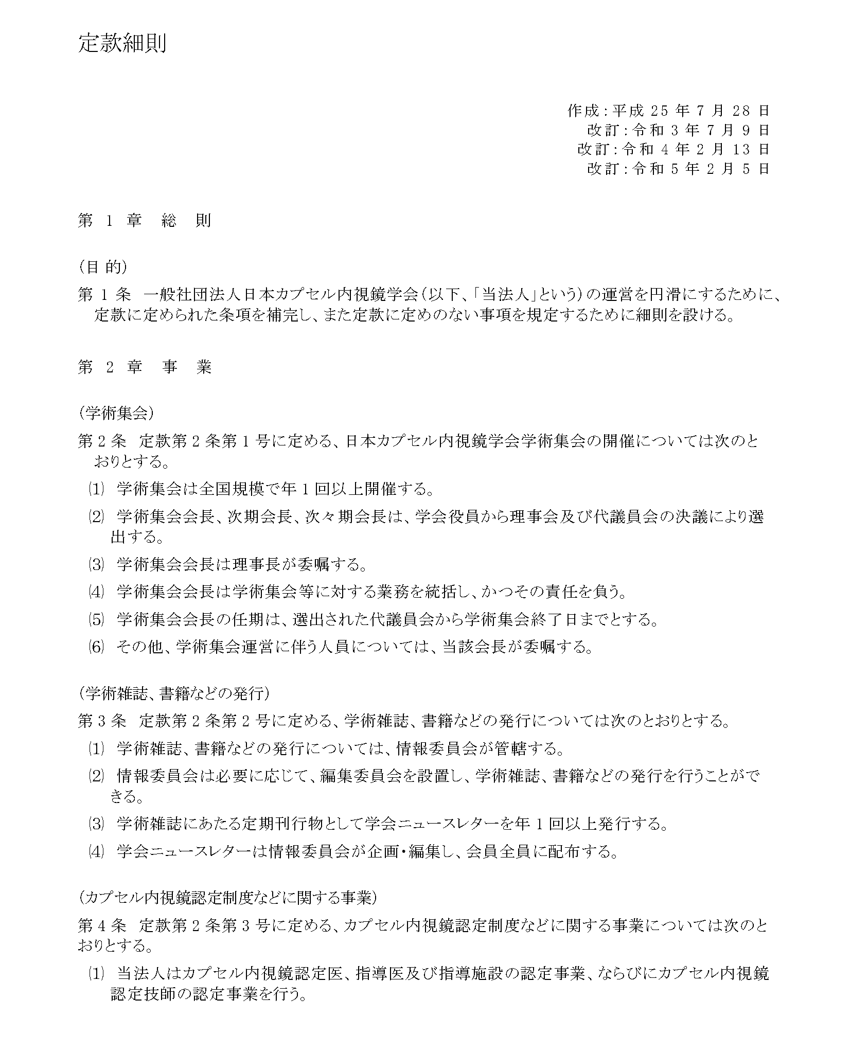 第1条 当法人は、一般社団法人日本カプセル内視鏡学会(The Japanese Association for Capsule Endoscopy [JACE])と称する。